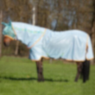 Fluedekken i strikket polyesternetting. Kryssgjorder, to bogspenner og halerem. Komplett med avtakbart halsdekken. Stor halebeskytter og Horsewares patenterte beinskjæring.