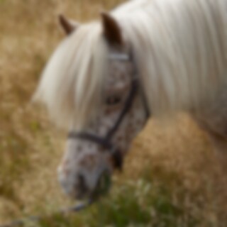 Visningsgrime i føllstørrelse med tre rader med blanke steiner på pannebåndet.