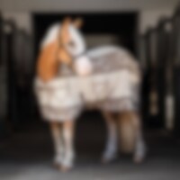 Pledd i mønstret fleece som absorberer og transporterer bort fuktighet/svette. Fungerer utmerket som stall-, transport- og svetteteppe. T-spenne i skulderen, kryssgjorder og halestropp holder teppet sikkert på plass.