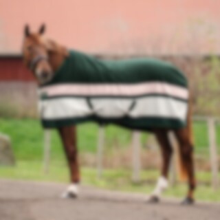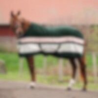 Teppe i tykt varmende 350g fleece som absorberer og transporterer bort fukt/svette. Fungerer utmerket som stall-, transport- og svettedekken. T-spenne i bogen, kryssgjorder og halerem holder dekken sikkert på plass.