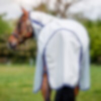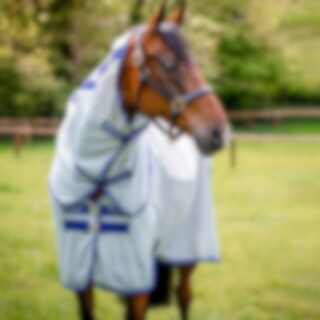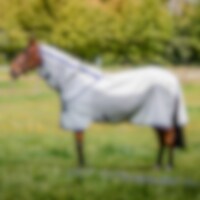 Det ultimate sommerdekkenet med ryggdel i solid, rutete bomull/polyester som beskytter både mot UV-strålene fra solen (60–70 %) og lette sommerskurer. Lett polyesternetting på sidene beskytter mot insekter, samtidig som det gir god ventilasjon og gjør at hesten holder seg sval selv på varme dager. Stor halebeskytter og Horsewares patenterte beinskjæring gir god bevegelsesfrihet.
