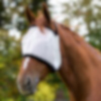 Fluemaske med bredt borrelåsbånd. Kantet med myk fuskepels. Fungerer også uten grime.