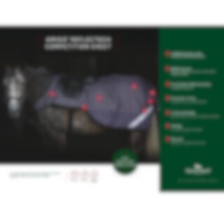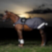 Ridedekken i 1200D polyester med innvevde reflekstråder og ekstra refleksdetaljer som gir økt synlighet ved ridning i mørket. Vanntett og med gode pusteegenskaper. Fôret med blank polyester. Formen på dekkenet er designet for å passe rundt salen og gi plass til rytterens sjenkel.