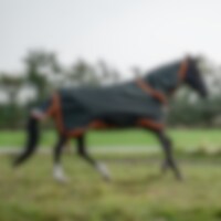 Horsewares populære Amigo som regndekken med 30 g fyll. V-lukking i bogen. Horsewares patenterte benskjæring gir størst mulig bevegelsesfrihet. Feste for liner slik at du kan kombinere for ulike værforhold og situasjoner. Leveres komplett med halsdekken med 30 g fyll.