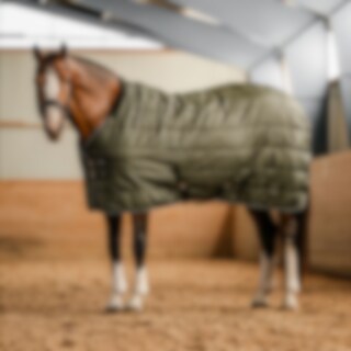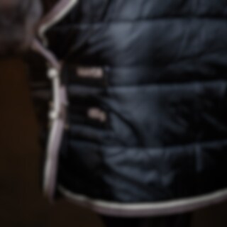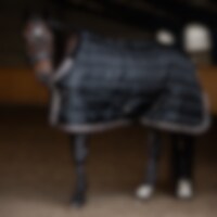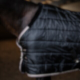 Quiltet stalldekken i 420D polyester med en blank utside som forhindrer at flis og smuss fester seg. Varmende vattering i 150 g polyfill. Innside i blank 210D polyester reduserer risikoen for gnagsår. Ekstra vattert med teddy ved manken. Dobbel t-spenne i