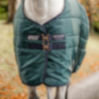Amigo Ripstop Insulator Stable Diamond med 100grams fyll er et optimalt stalldekken med høy kvalitet forsterket med ripstop-stoff. Ripstop er en unik konstruksjon av stoff der tykkere tråder er integrert i vevingen i et klassisk rutemønster. Dette gir en optimal motstand mot store eller små rifter i stoffet, samtidig som det opprettholder en lett profil for å lette komforten til hesten din. Ripstop har også andre funksjoner som kjemikaliefri produksjon og god pusteevne. Stalldekkenet har en klassisk dobbeltspent lukking og formede benbuer for å gi hesten maksimal bevegelsesfrihet og komfort. Innsiden av teppet er også foret med antistatisk og antibakterielt polyesterfôr for å forhindre gnagsår og bidrar til å opprettholde en sunn og skinnende pels. Selges uten hals.