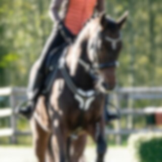 Fortøy med avtagbar martingal og hurtigspenne ved salgjorden. Plater fôret med syntetull. Strikk ved bog.