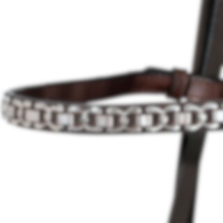 Aachenhodelag med kroker ved bittringene, sidestykkene er justerbare i nakken. Pannebånd med sølvfarget lenke. Uten hakerem.
