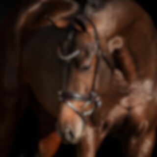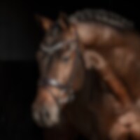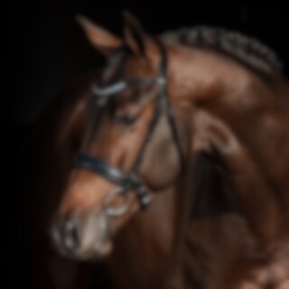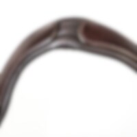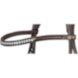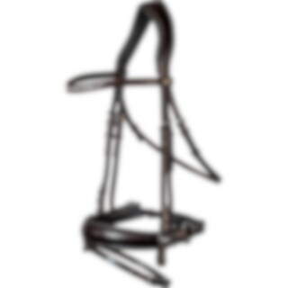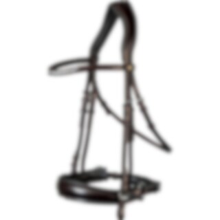 Aachenhodelag i europeisk lær med bred 4,5 cm fôret neserem. Helt avtakbar aachenrem. Bredt, formet nakkestykke med mykt fôr, og buet pannebånd med hvite steiner. Vegetabilsk garvet lær.