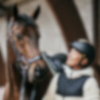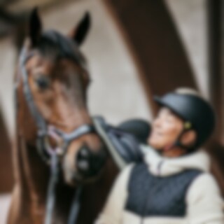 Hodelag med bredt nakkestykke og myk polstring utformet for å redusere trykket på nakken. Hurtiglukking under haken med flyttbar plate, og justerbar høyde og stilling på neseremmen. Ekstra polstring over neseryggen. Buet pannebånd med mykt fôr.