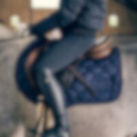 Sjabrak dekorert med en rekke steiner ton-i-ton og logo med steiner på venstre side. Glatt, slitesterk utside i polyester og innside i polyester Coolmax transporterer bort fukt for å opprettholde en behagelig temperatur nærmest hesten. Solid kombinasjonspolstring i 300g polyfill + 0,8 cm skum gir en sjabrak som holder seg godt på plass og holder formen. Ekstra forsterket ved salgjorden for økt holdbarhet og korte stropper for feste til salens d-ring gjør at sjabraken passer til de fleste salene.