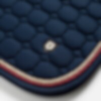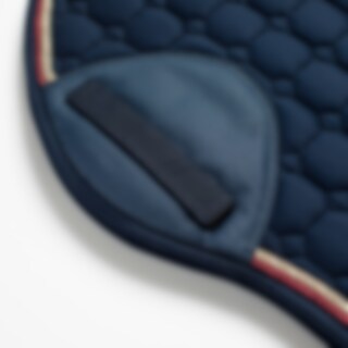 Vattert skjerf med et ytre lag av silkemyk bomullstwill. Kraftig kombinasjonsvattering i 300 g polyfill + 1 cm skum gir et solid skjerf som både holder formen og holder seg på plass. Innside i 100 % polyesterfunksjonsmateriale bidrar til å transportere fuktighet bort fra hesten. Teddyfôr ved manken hindrer gnagsår, og 3D-nettingpanel langs ryggraden for å gi god ventilasjon. Ekstra forsterkning ved salgjorden gir økt slitestyrke og korte stropper for feste i salens d-ring gjør at sjabraken passer til de fleste saler.