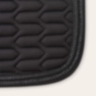 Sabrakk i polyestertwill med et lite vattert sikksakkmønster. Solid kombiunderlag i 300g polyfill + 1,2 cm skum som gir et solid sjabrak som holder seg på plass og holder formen vask etter vask. Polyester coolmax-interiøret hjelper til med å transportere bort fuktighet for å opprettholde en behagelig temperatur for hesten. - Nettingpanel langs ryggraden for økt ventilasjon. Forsterket i gjorden for ekstra holdbarhet, korte borrelåsstropper for feste til setets d-ring gjør at den passer under de fleste setemodeller. Dekorert med glitterbånd og silkepiping i lurex. Hvit sjabrak med hvit innside, andre med svart innside.