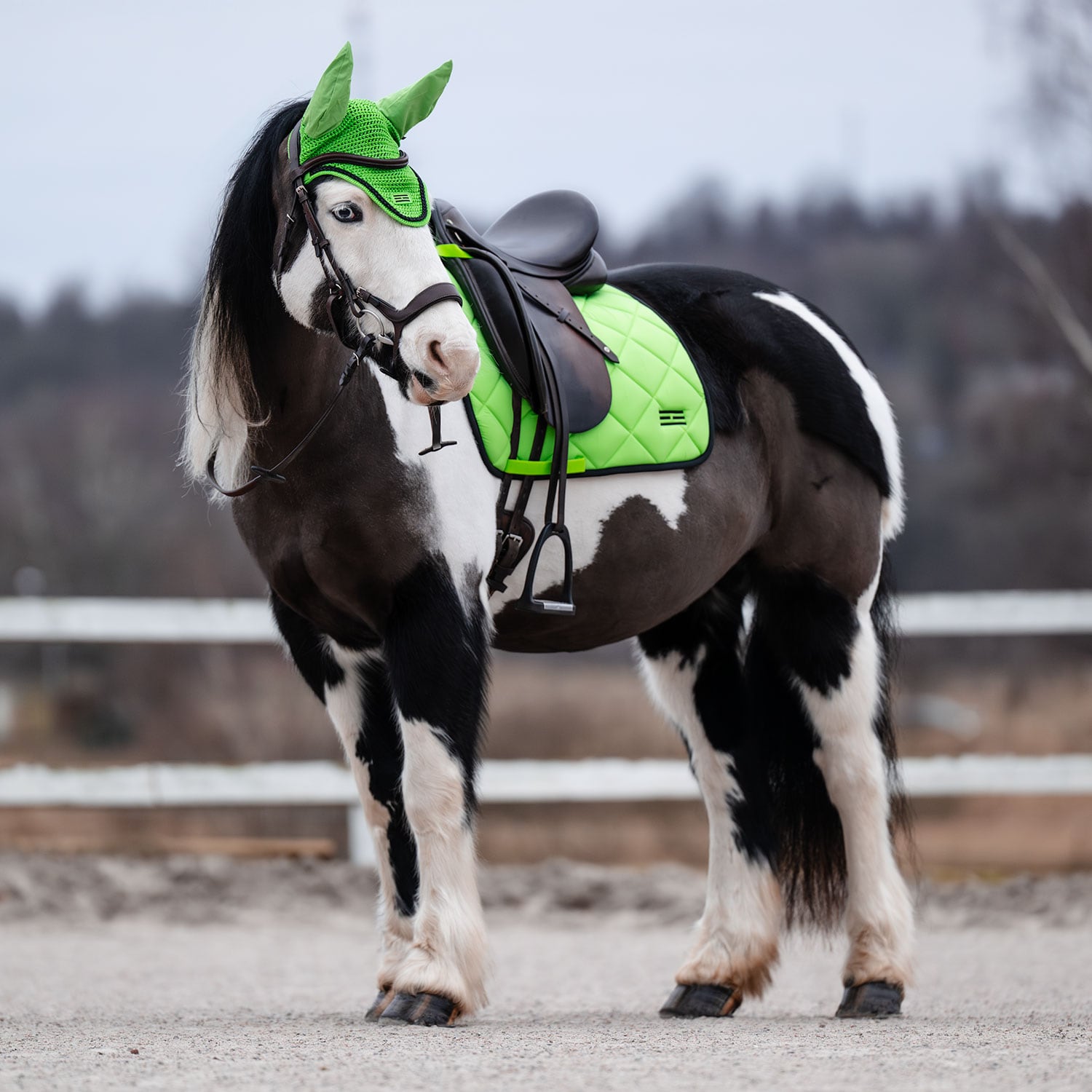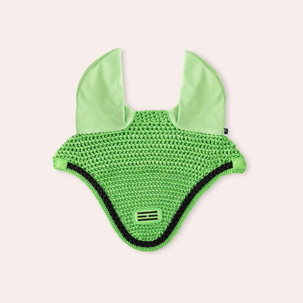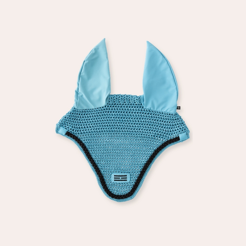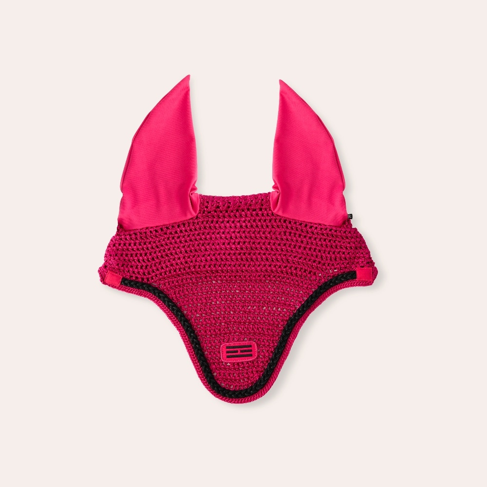 Heklet hette i skinnende nylongarn. Elastiske ører for god passform. Hull for hakerem holder hetten sikkert på plass. Brodert Fairfield-logo i lurex-tråd og flettet lurex-kantbånd.