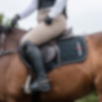 Quiltet bomullssjabrak med innside i Coolmax-funksjonsmateriale som bidrar til å transportere vekk fukt. Nettingpanel langs ryggraden for å gi ytterligere ventilasjon. Solid kombinasjonsvattering i 700 g polyesterfilt og 8 mm skumgummi. Silikontrykk bidrar til å holde salen på plass. Ekstra forsterking ved salgjorden for å minimere risikoen for slitasje. Kantbånd og to silkepassepoiler. Brodert EquiXpert-logo.