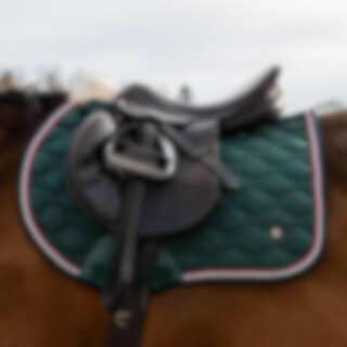 Quiltet sjabrak med et ytre lag i slitesterk polyester/bomullstwill. Kraftig kombinasjonsvattering i 300 g polyfill + 1 cm skum gir en solid sjabrak som både holder formen og holder seg på plass. Innside i 100 % polyesterfunksjonsmateriale bidrar til å transportere fuktighet bort fra hesten. Teddyfôr ved manken hindrer gnagsår, og 3D-nettingpanel langs ryggraden for å gi økt ventilasjon. Ekstra forsterkning ved salgjorden gir økt slitestyrke, og korte stropper for feste i salens d-ring gjør at sjabraken passer til de fleste saler. Dekorert med to silkepiper og metalllogo.
