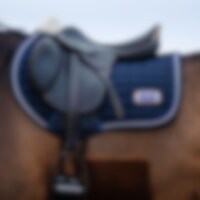 Quiltet sjabrak med en utside i slitesterk bomullstwill, kraftig kombinasjonspolstring i 300 g polyfill + 1 cm skum gir en stabil sjabrak som holder formen og holder seg på plass, og en innside i 100 % polyesterfunksjonsmateriale som bidrar til å transportere fuktighet bort fra hesten. Teddyfôret i nakken for å forhindre gnagsår og 3D mesh-panel langs ryggraden for å gi økt ventilasjon. Ekstra forsterkning ved salgjorden gir økt slitestyrke og korte stropper for feste i salens d-ring gjør at sjabraken passer til de fleste saler. Dekorert med to silkepassepoiler og en brodert logo med glitter.