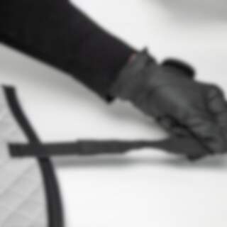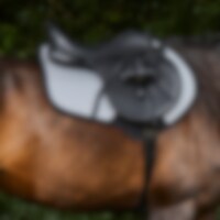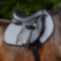Småquiltet allroundsjabrak med utside helt i refleks. Innside i vaffelvevd bomull som effektivt transporterer vekk fukt. Kort rem med strikk som festes i salens D-ring, gjør at sjabraken passer til de fleste saler. Ekstra forsterking ved salgjordleiet for å minimere risikoen for slitasje. Trinity-broderi på salgjordforsterkningen, og Trinity-metallogo på venstre side.