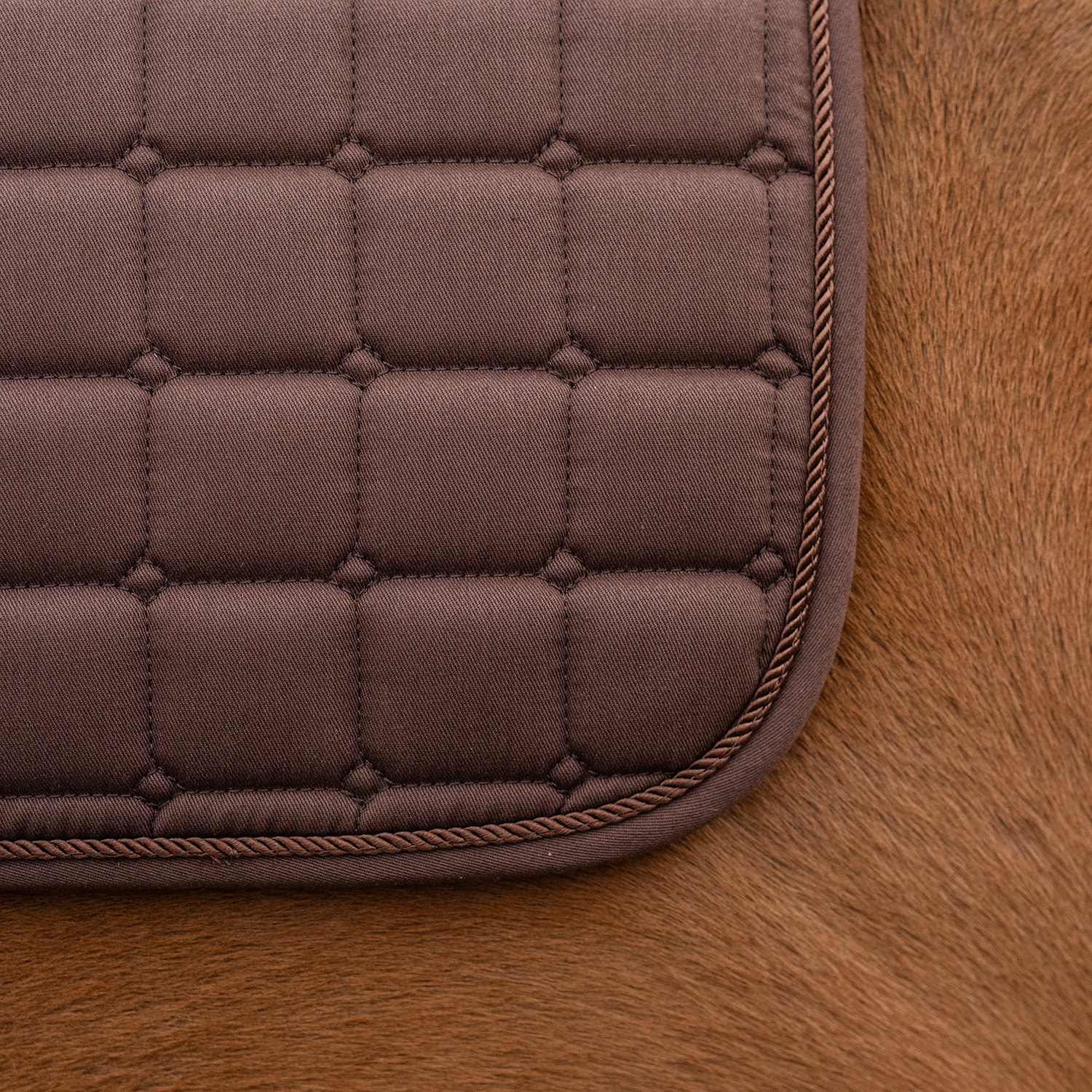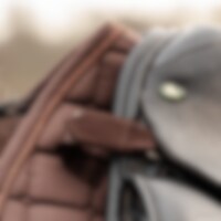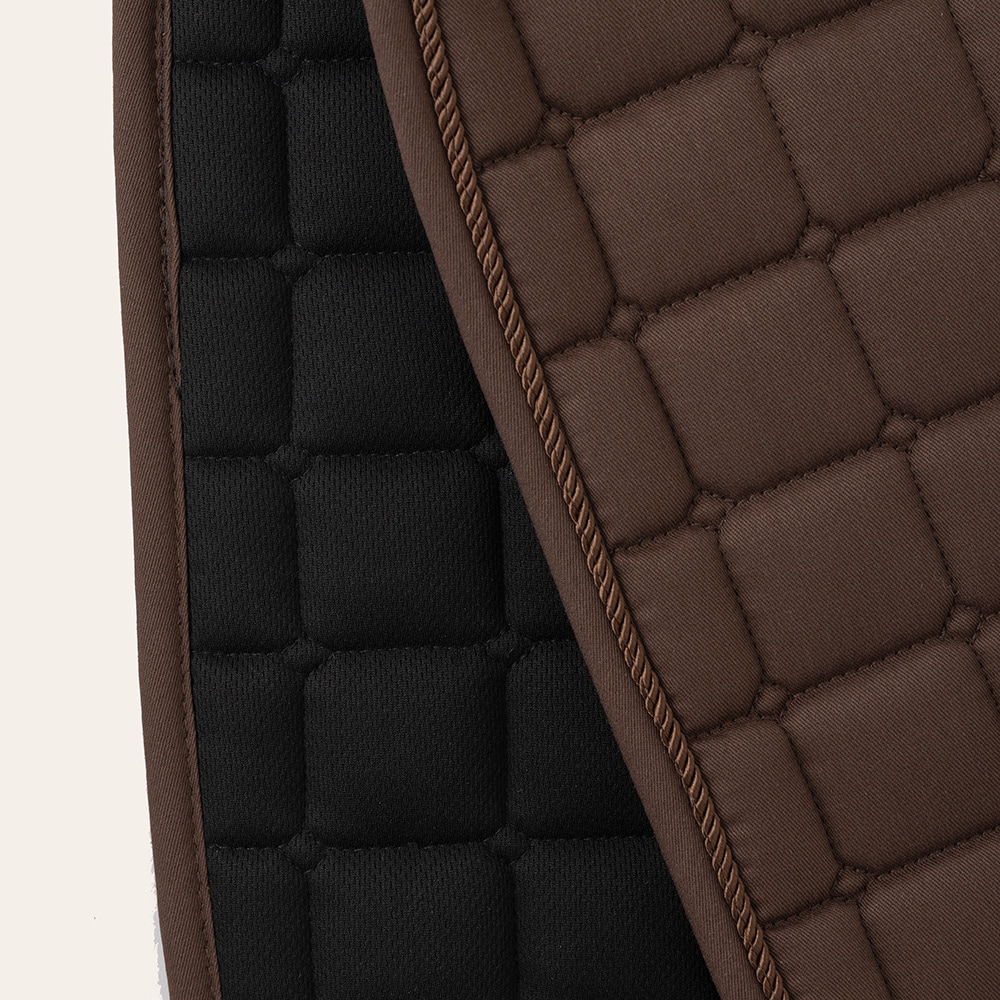 Quiltet sjabrak med kombinasjonspolstring av 300 g polyfill + 0,8 cm skum, som gir et stabilt sjabrak som holder formen og ligger godt på plass under salen. Innsiden er i pustende Coolmax-funksjonsmateriale som hjelper til med å transportere fukt bort fra hesten.