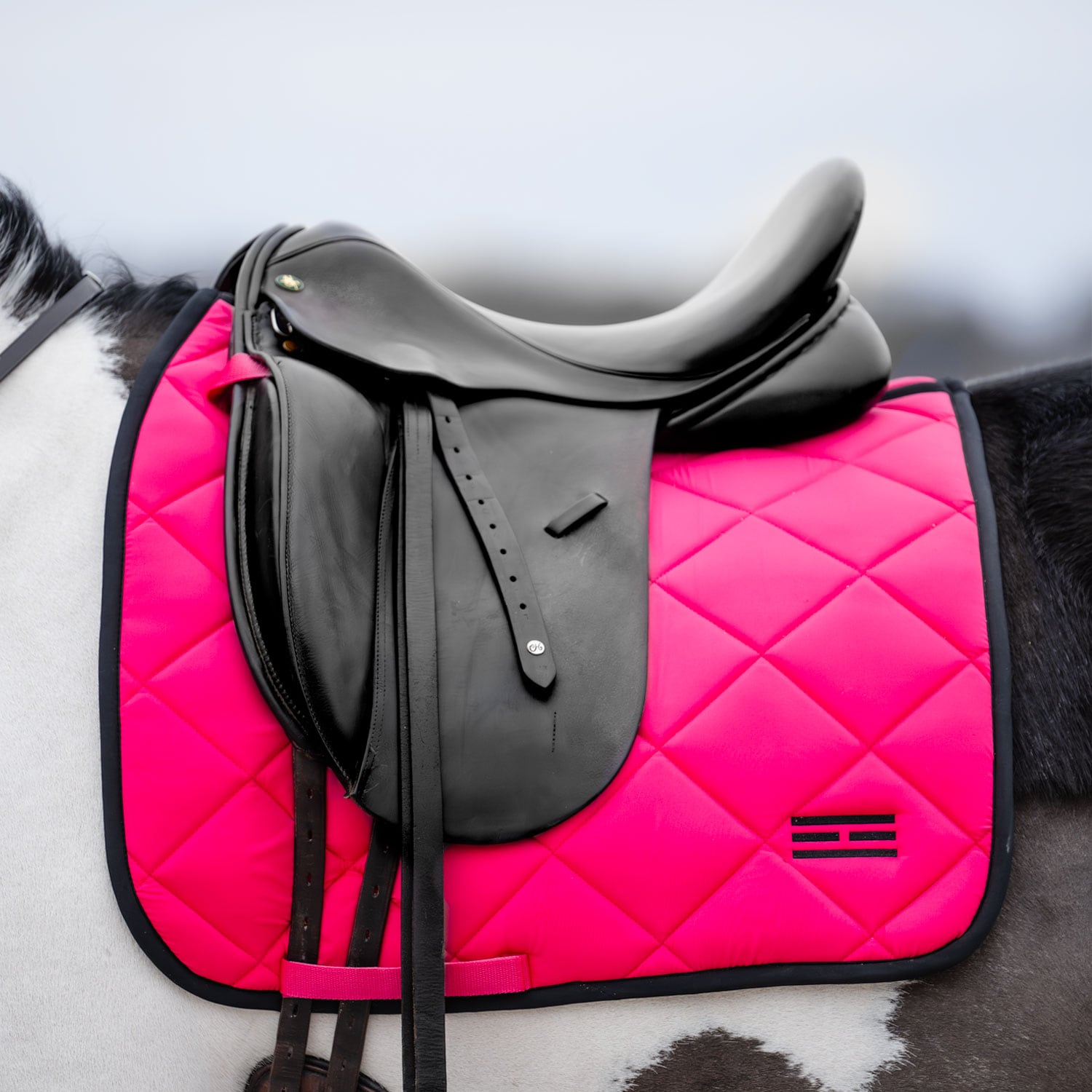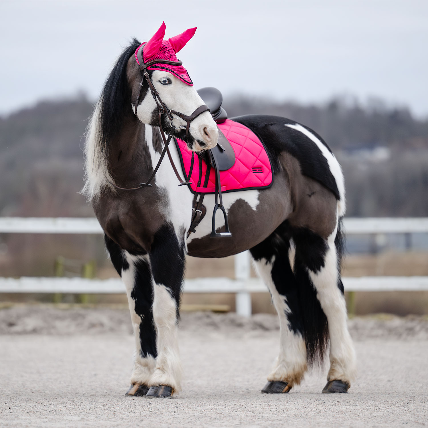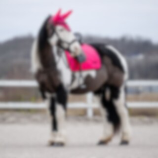 Tykt sjabrak med kombinasjonsvattering i 300 g polyesterfyll + 0,80 cm skum som gjør at sjabraket ligger godt under salen og holder formen vask etter vask. Innvendig i Coolmax-funksjonsmateriale som hjelper hesten med å holde en behagelig temperatur. Borrelåsstropper for festing til salen. Brodert Fairfield-logo.