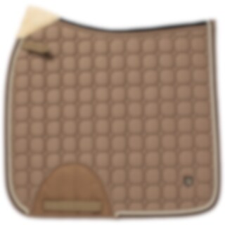 Vattert skjerf med et ytre lag av silkemyk bomullstwill. Kraftig kombinasjonsvattering i 300 g polyfill + 1 cm skum gir et solid skjerf som både holder formen og holder seg på plass. Innside i 100 % polyesterfunksjonsmateriale bidrar til å transportere fuktighet bort fra hesten. Teddyfôr ved manken hindrer gnagsår, og 3D-nettingpanel langs ryggraden for å gi god ventilasjon. Ekstra forsterkning ved salgjorden gir økt slitestyrke og korte stropper for feste i salens d-ring gjør at sjabraken passer til de fleste saler.