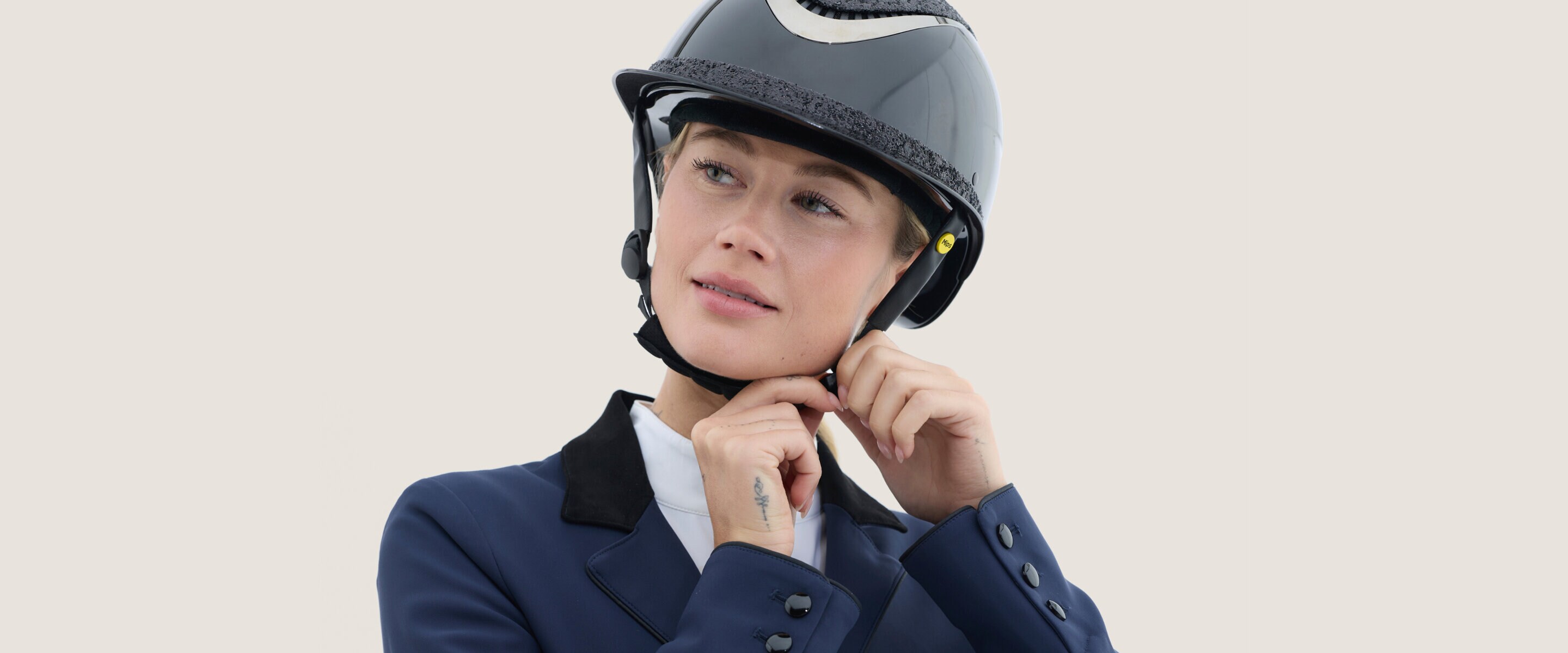 Jockey-style helmets: In eventing, jockey-style helmets are recommended, which do not have a peak and are covered. This is to reduce the risk of the helmet getting caught and causing further injury during a fall.