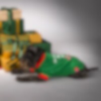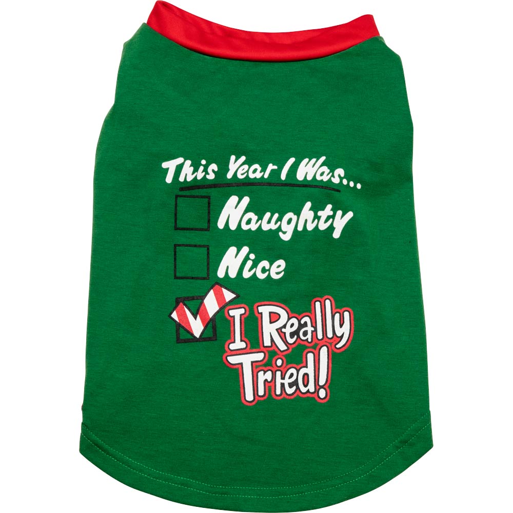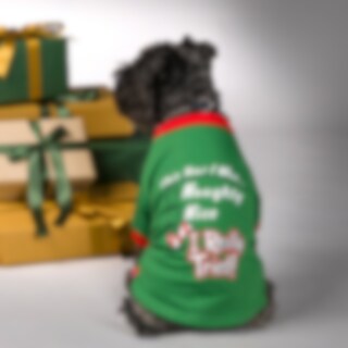 T-skjorte i bomull med morsomt, juleinspirert trykk. Men denne blir den pelskledde vennen din også julefin!