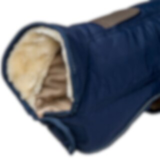 Hundedekken i 100 % vannavvisende polyester taslan, fôret med supermyk fleece i fløyel og 180 g polyfill-vattering. Quiltet i kanter for å sitte godt og komfortabelt rundt hunden. Modellen går litt ned over bakdelen til hunden for å holde på varmen selv når det er kaldt. Kantbånd med reflekstråd gir økt synlighet. Høy, nedbrettbar krage fôret med tykt og koselig «saueskinn» i 100 % polyester. Hull til kobbel i krage og på rygg slik at du kan velge det som passer best for deg og hunden din.