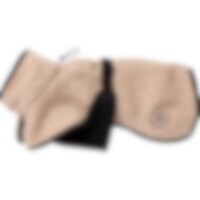 Dekken i myk ullblanding med lang pels. Høy krage som kan åpnes med borrelås og brettes ned etter behov. Snøring i halsåpningen bidrar til å gi gode justeringsmuligheter. Justerbar magegjord og elastiske, justerbare beinsnorer gjør at dekkenet sitter komfortabelt på plass. Mageplaten er i softshell og er fôret på innsiden med fleece. Åpning i ryggen til både halsbånd og sele. Ullen holder hunden din varm og bidrar til å tørke den hvis den har blitt fuktig. Ullen holder varmen selv hvis den blir våt. Dekkenet har dyp skjæring over bakparten til hunden for å varme og beskytte viktige muskelgrupper. Materialet er overlappende over bogen for å gi hunden fullstendig bevegelsesfrihet under lek og trening.