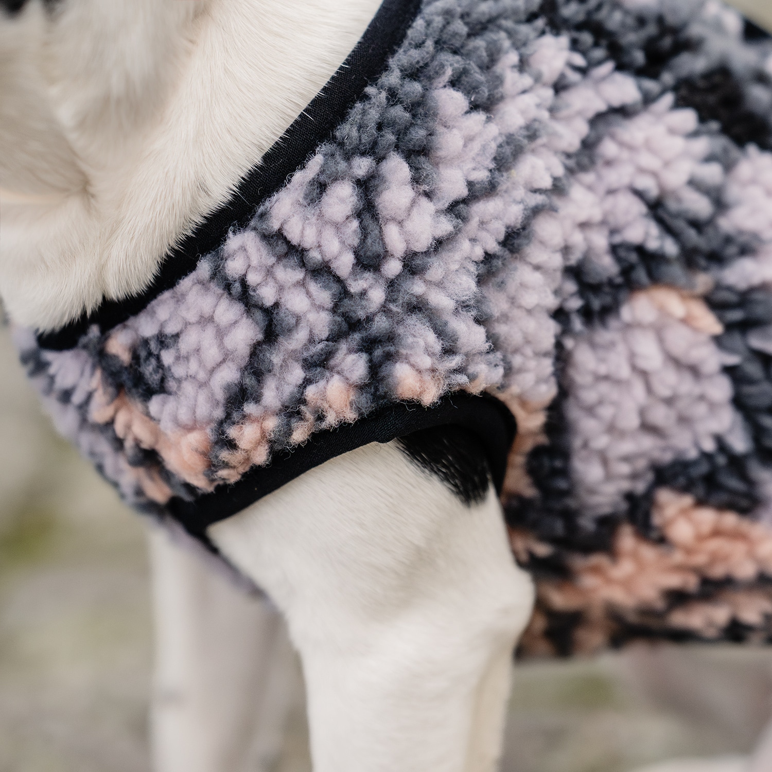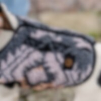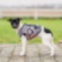 Varmt, mønstret fleecedekken til den lille hunden. Lukkes med trykknapper på ryggen. Mønstret i 100 % polyester.