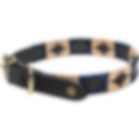 Hundehalsbånd i smidig og slitesterkt lær som bare blir mykere og mer komfortabelt med tiden. Dekorert med klassisk flettet mønster i vokset tråd. Spenner og D-ring i messing.