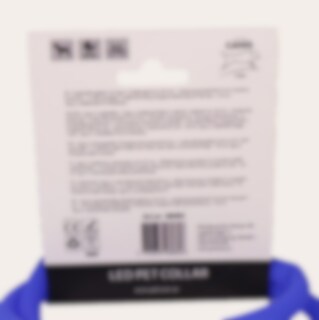 LED-halsbånd som lyser på tre forskjellige måter: rask blinking, langsom blinking og kontinuerlig lys. Halsbåndet lades opp ved hjelp av USB-kabel. Halsbåndet er 80 cm langt, men størrelsen kan enkelt justeres ved å klippe det av i passende lengde. Det tar ca. 30 minutter å lade opp batteriet, og da gir det 6–8 timer med godt lys. USB-ladekabel følger med i forpakningen.