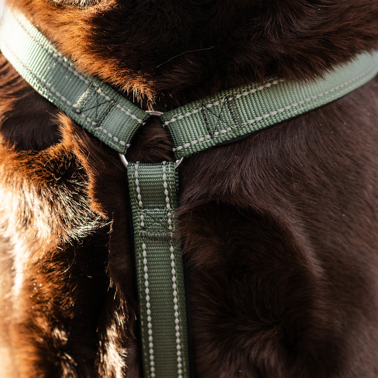 En stilig og funksjonell Y-sele fra traxx som er veldig enkel å ta av og på. Selen er laget av et hurtigtørkende materiale, fôret med myk neopren rundt halsen og mellom frambena. Justerbar rundt livet med to hurtigfester på hver side. Selen har reflekser for ekstra synlighet.