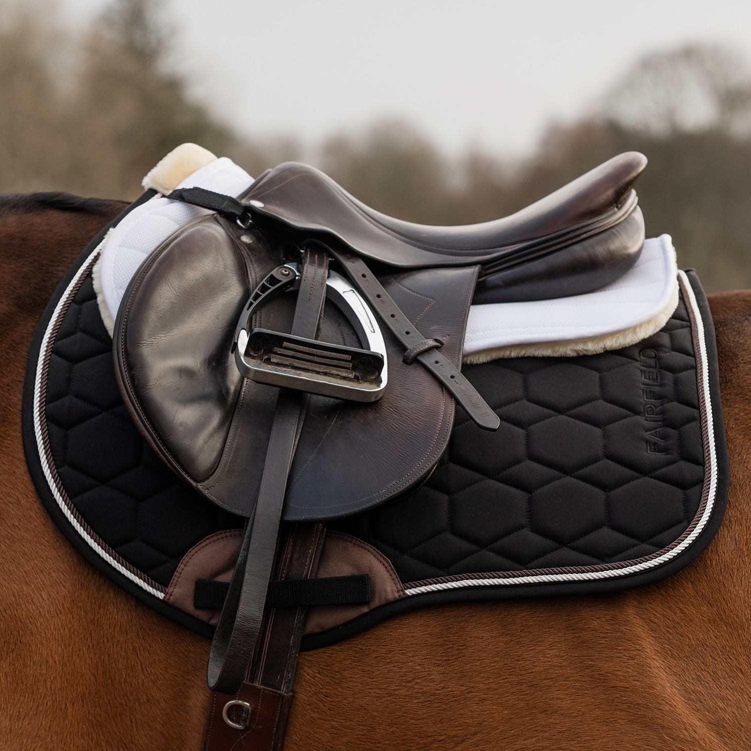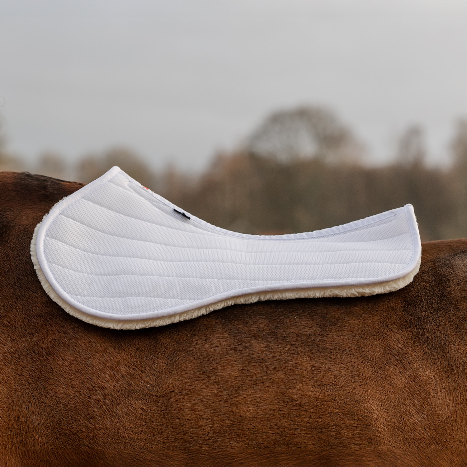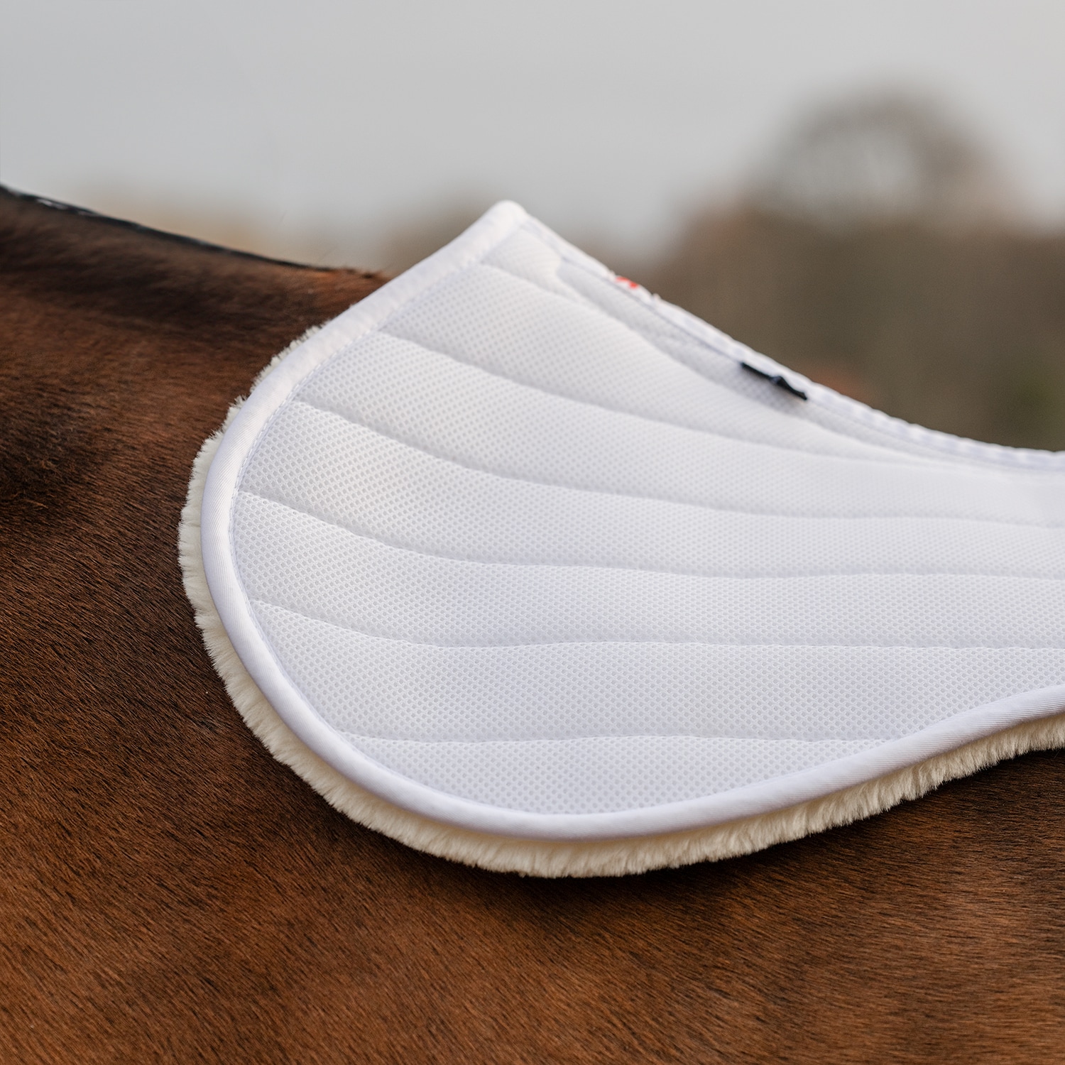 Salpad med overside og innerfôr i 3D-mesh som puster og slipper gjennom overflødig varme. Det sterke 3D-nettet på innsiden virker støtabsorberende og lar overskuddsvarmen passere igjennom. Fôret med slitesterkt imitert saueskinn i 100 % polyester, som bid