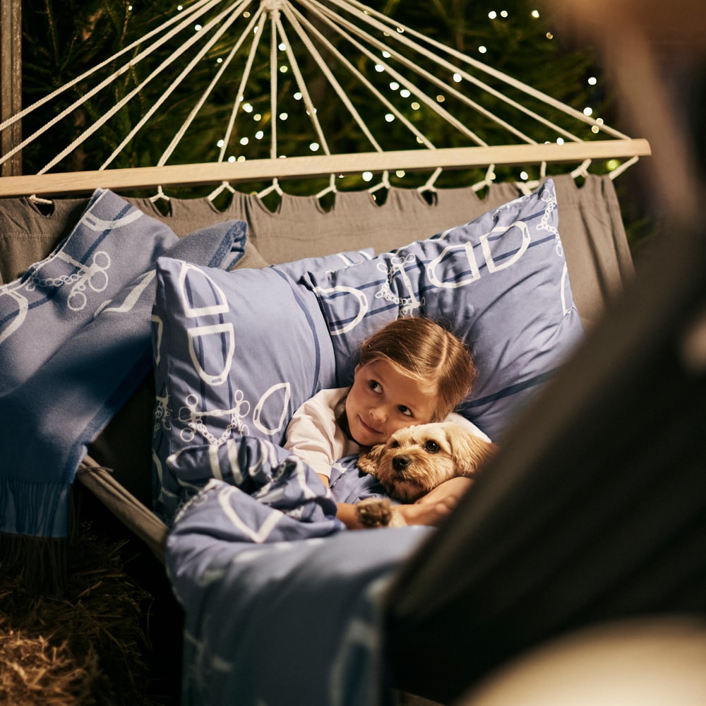 Sengesett i to deler, putetrekk og dynetrekk i 100 % bomull. Oeko-Tex Made in Green samt svanemerket bomull. Rotasjonstrykt mønster. Størrelse: dynetrekk 150 x 210 cm, putetrekk 50 x 60 cm.