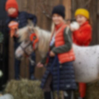 Lett varmeskjørt med toveisglidelås foran og trykknapper bak. Strikk i livet. Elastiske bånd på innsiden som festes rundt lårene for å holde skjørtet på plass. Skjørtet er impregnert med Rudolf Bionic Finish Eco, som er en vann- og smussavvisende behandling.