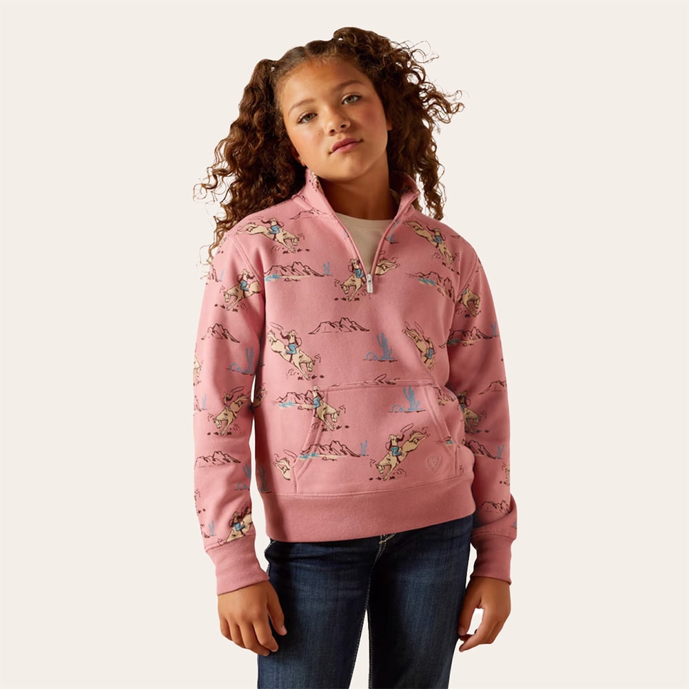 Trøye med 1/4 glidelås og westerntrykk. Den perfekte genseren for suksess! Med silketrykt westernmotiv og en kengurulomme foran, laget av myk og behagelig bomulls-polyesterfleece.