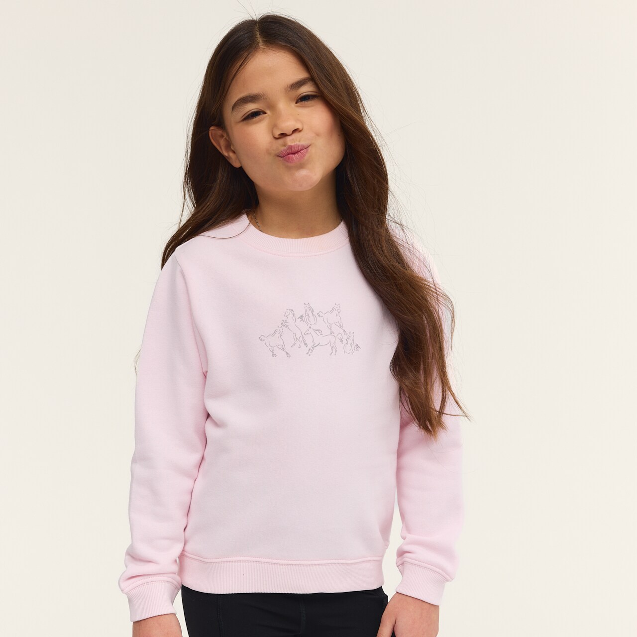 Klassisk sweatshirt i myk bomullskvalitet, med børstet innside. Ribbede mansjetter og dekorativt trykk på brystet.