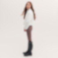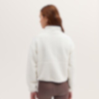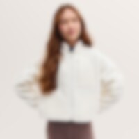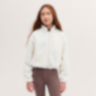 Myk jakke i teddypilé med høy krage. Kortere modell med snøring i nedre kant. Mykt, elastisk innerfôr. Glidelås med hakebeskyttelse for å forhindre gnaging. Sidelommer og brystlomme med glidelås. Elastisk bånd ved håndleddene.