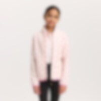 Myk fleecegenser med høy krage, glidelås foran og to glidelåslommer. Elastisk bånd ved håndleddene og i nederkant.
