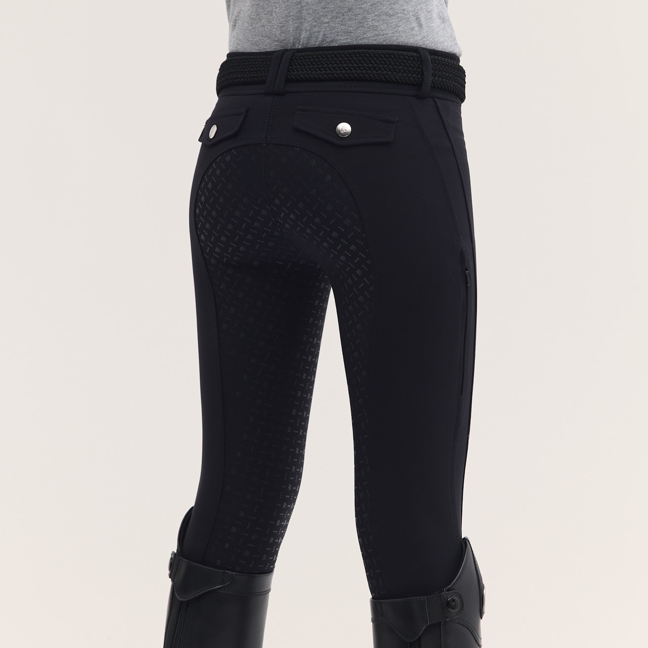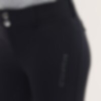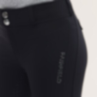 Ridebukse i vevd, hurtigtørkende funksjonelt materiale med høy pusteevne. Det elastiske materialet gir god smidighet. Helforsterket med grep som gir et mykt feste i salen. Normalhøy midje med dobbel lukking for å sikre at ridebuksene sitter godt på plass