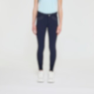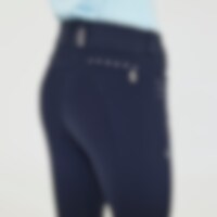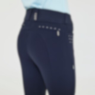 Vevd ridebukse med salsnitt i elastisk funksjonsmateriale. Formfast kvalitet som er slitesterk, smussavvisende og meget behagelig å ha på. Kneforsterket med grep som fortsetter på innsiden av lårene for optimalt feste og støtte i salen uten at buksen er helforsterket. Elastikk ved anklene. Normalhøyt liv med to knapper som gjør at ridebuksen sitter godt på plass og gir økt komfort. To lommer foran og to lommer med glidelås bak. Diskré mobillomme med glidelås på utsiden av låret. Pen detalj med strassperler ved lommene gir en elegant look. Noe liten i passformen, vi anbefaler derfor at du går opp en størrelse.