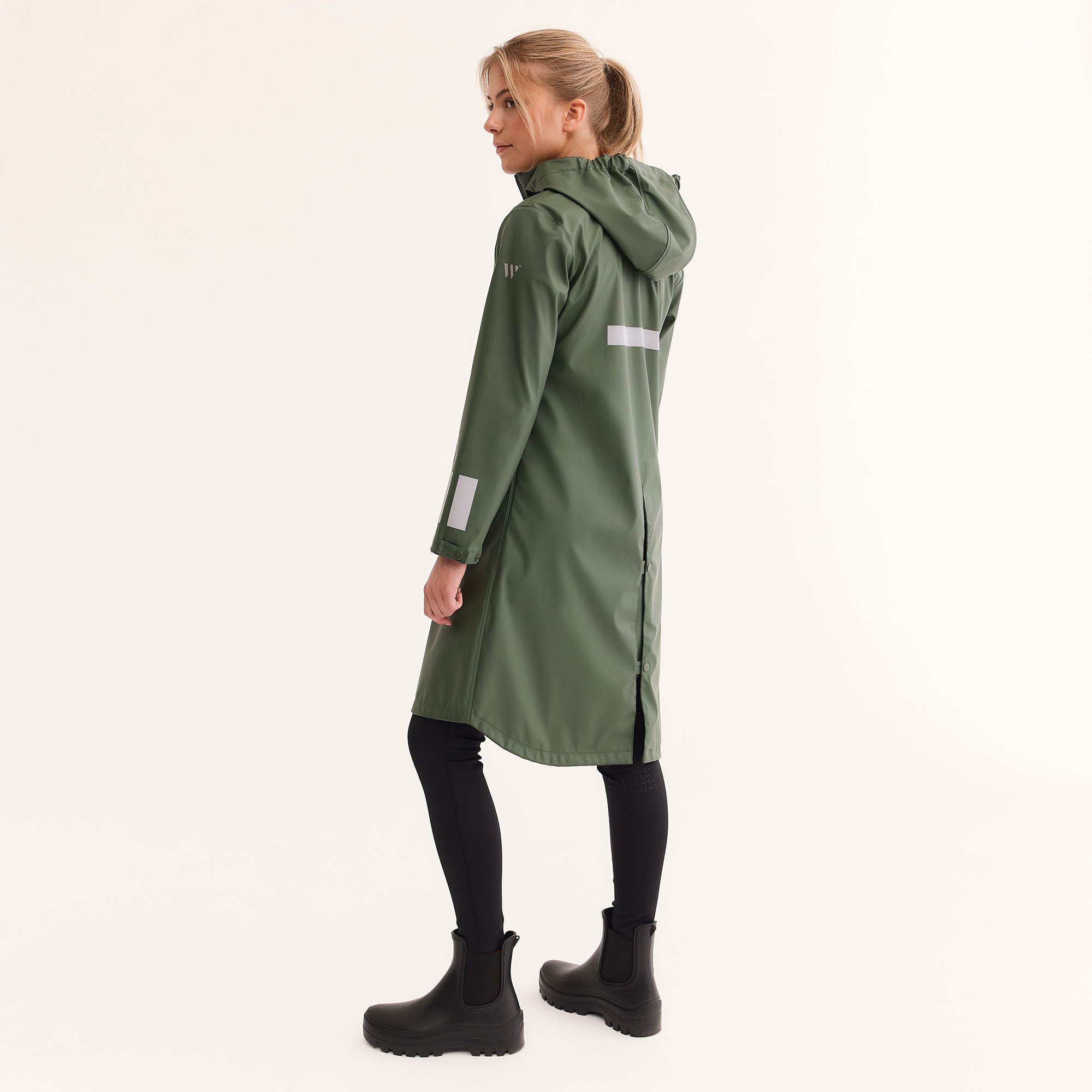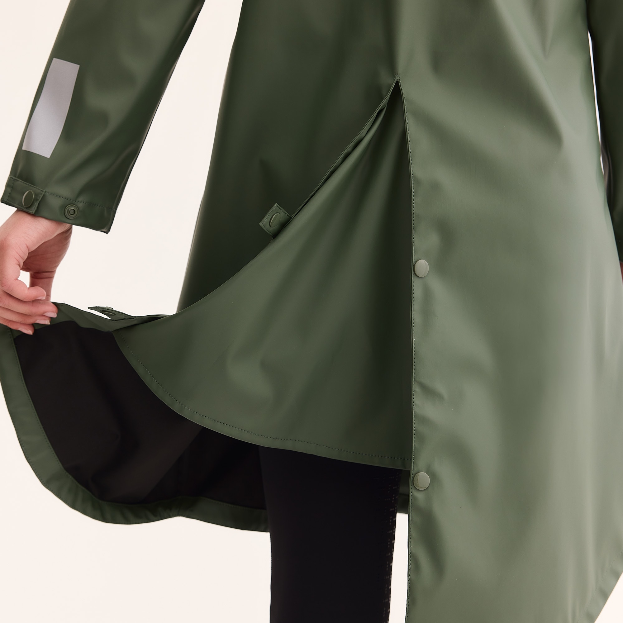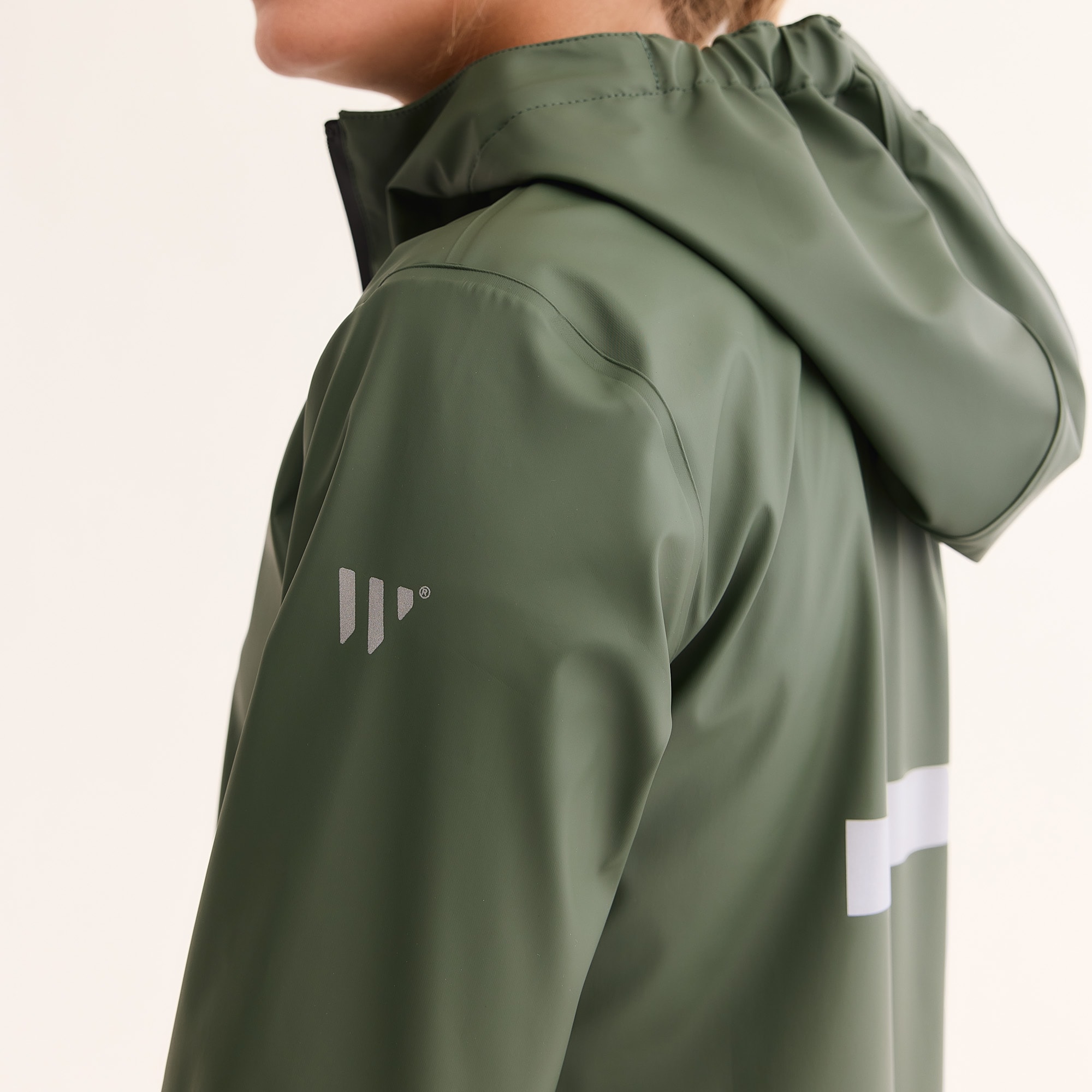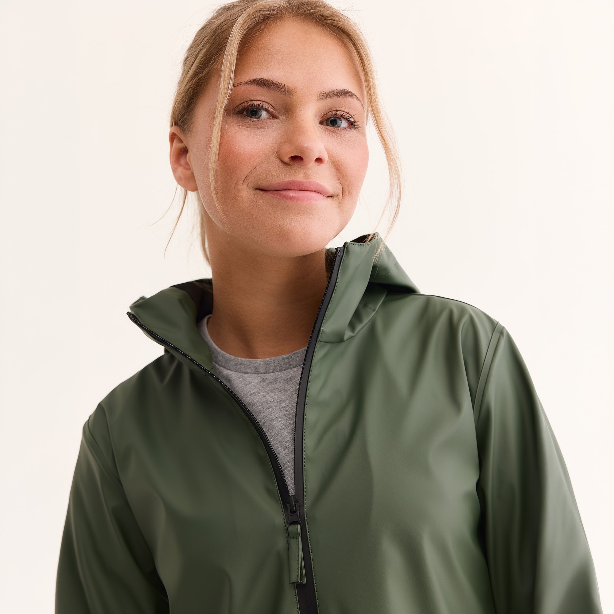 Funksjonell og vanntett regnjakke, designet for å holde deg tørr og komfortabel uansett vær. Den justerbare hetten med snøring gir ekstra beskyttelse, mens den klassiske vind- og vanntette konstruksjonen sikrer at du er utstyrt for både regn og rusk. Med sin romslige passform kan du enkelt bruke varmeplagg under jakken, noe som gjør den til et utmerket valg for langtidsbruk. Jakken har to praktiske lommer og et knelangt design som gir ekstra beskyttelse. Den lukkes enkelt med glidelås foran og har en splitt bak for økt bevegelsesfrihet. Tydelige refleksdetaljer på ermene og ryggen gir synlighet og sikkerhet i mørket.