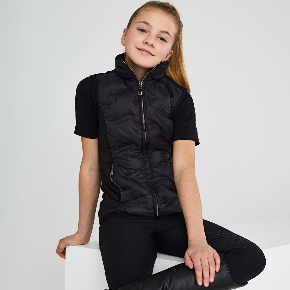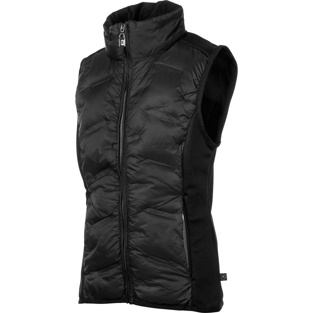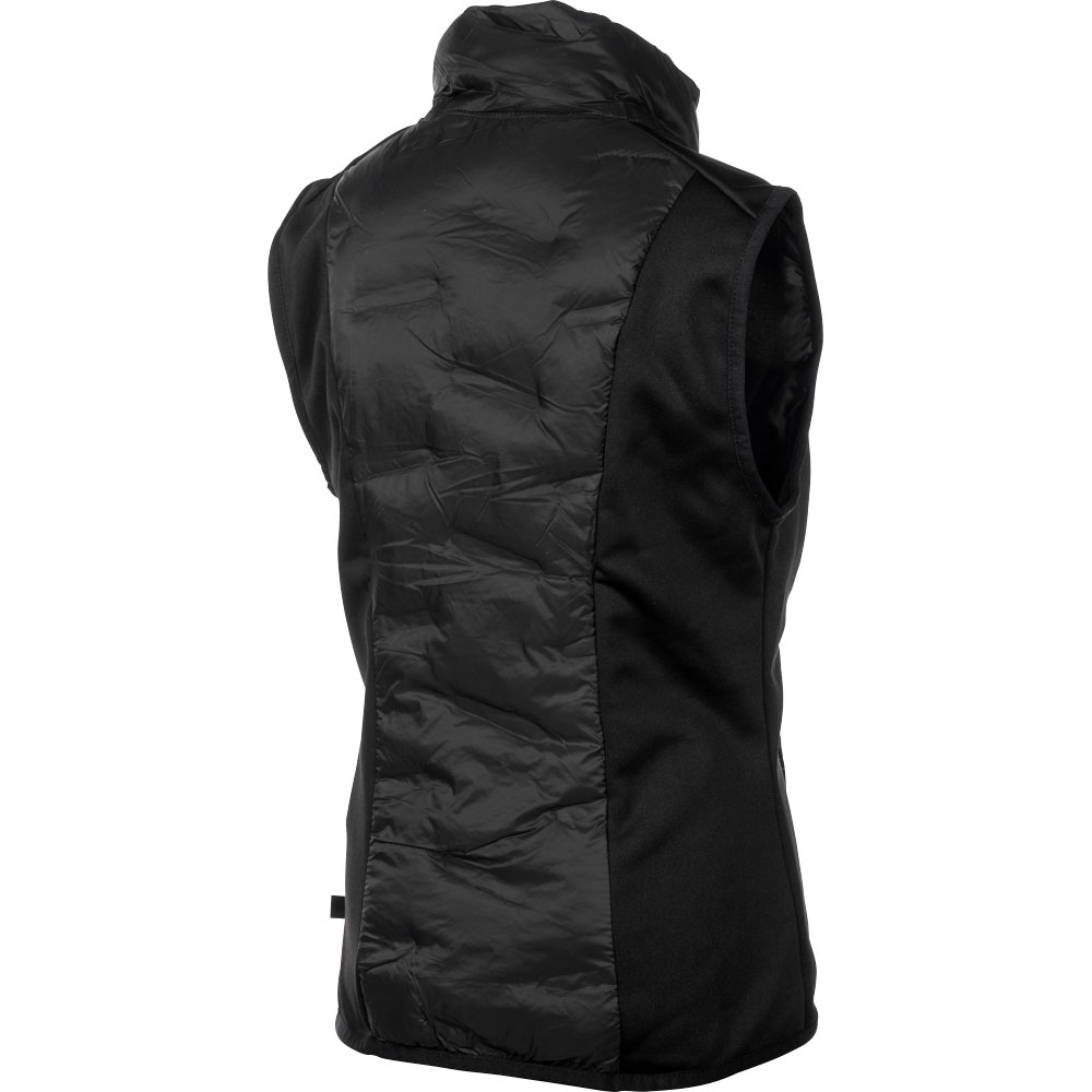 Hybridvest med vatterte paneler foran og bak. Elastisk trikotfleece i sidene. To lommer med glidelås foran. Vesten er impregnert med Rudolf Bionic Finish Eco.