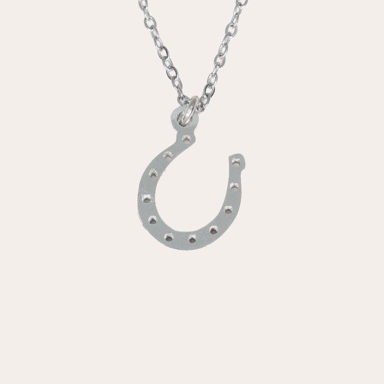 Et søtt og symbolsk halskjede i kirurgisk stål, helt fritt for nikkel og kobolt. Den lille hesteskoen (10x17 mm) representerer flaks og trygghet, og henger fint i et 50 cm langt kjede. Perfekt som hverdagssmykker eller som en gjennomtenkt gave til noen du ønsker å ønske lykke til.