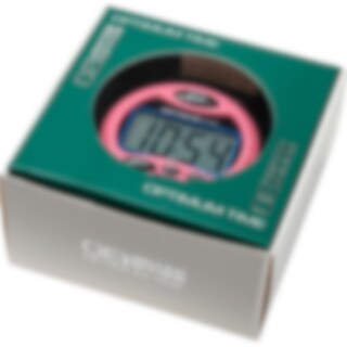 Stoppeklokke som egner seg for feltritt. Vanntett klokke som kan vris i festet slik at displayet vises i den retningen man ønsker. Elastisk armbånd som sitter sikkert på armen. Ca. 1,8 cm høye tall på et 4 x 2 cm display. Med funksjoner som: Stoppeklokke, minutteller med alarm og programmerbar nedtelling med alarm. Piper hvert minutt. Leveres med batteri.