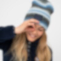 Ribbestrikket lue i mykt, melangefarget garn som gir herlige fargeskiftinger. Bred brettekant vevd logomerke.