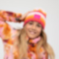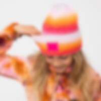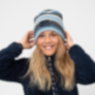 Ribbestrikket lue i mykt, melangefarget garn som gir herlige fargeskiftinger. Bred brettekant vevd logomerke.