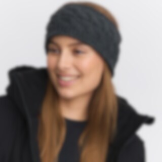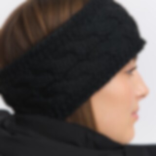 Varmende pannebånd med dekorativ kabelstrikk. Innsiden er fôret med myk fleece.
