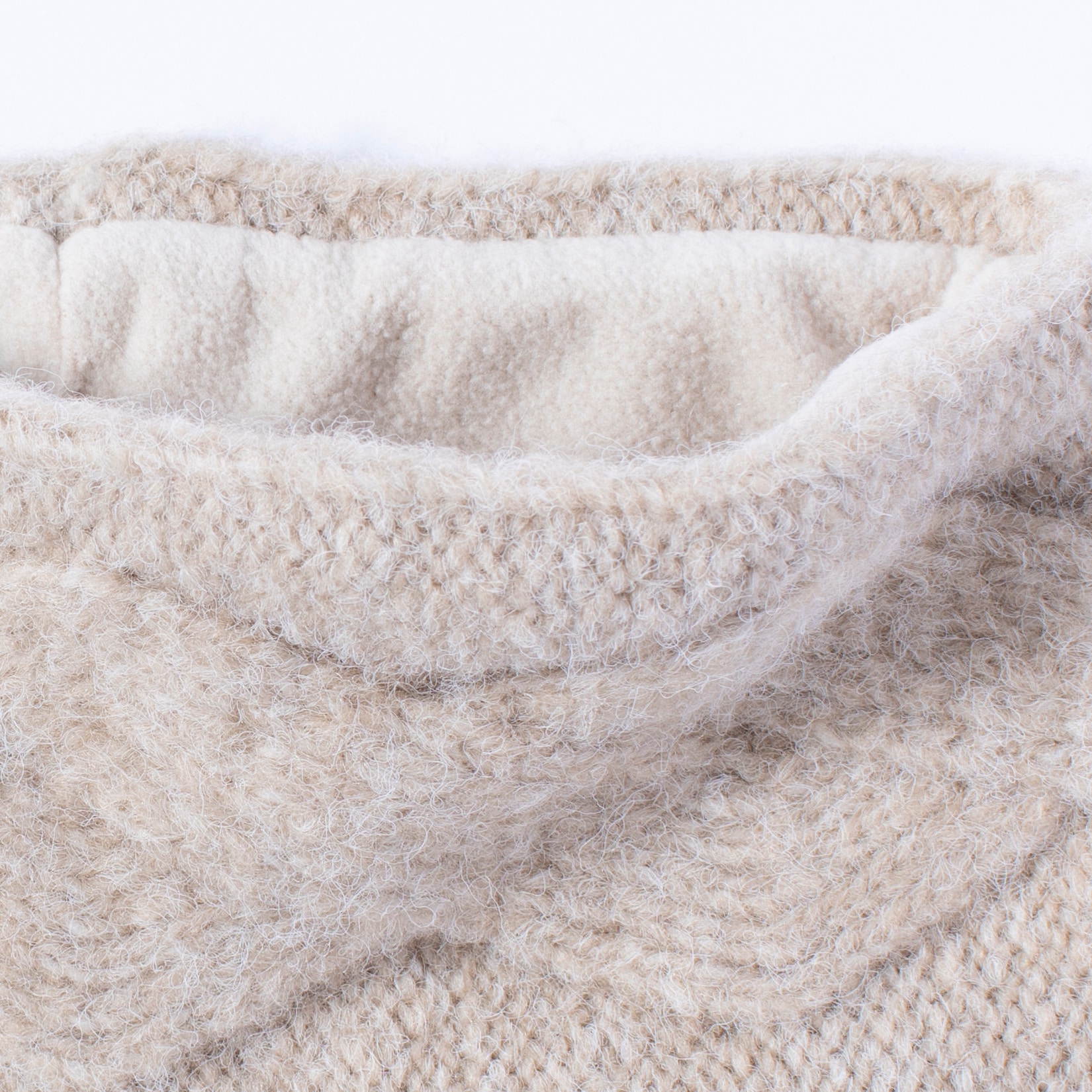 Varmende pannebånd med dekorativ kabelstrikk. Innsiden er fôret med myk fleece.